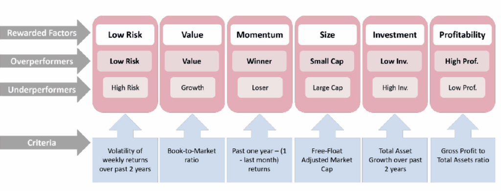 In line with academic literature, we consider factors as the optimal means to clearly visualize the drivers of both risk and potential long-term performance in an equity portfolio. Every systematic risk factor is characterized by its ability to explain the common variations in stock returns, but academia distinguishes between those that are expected to generate excess returns in the long run and those that are not known to attract a risk premium.
